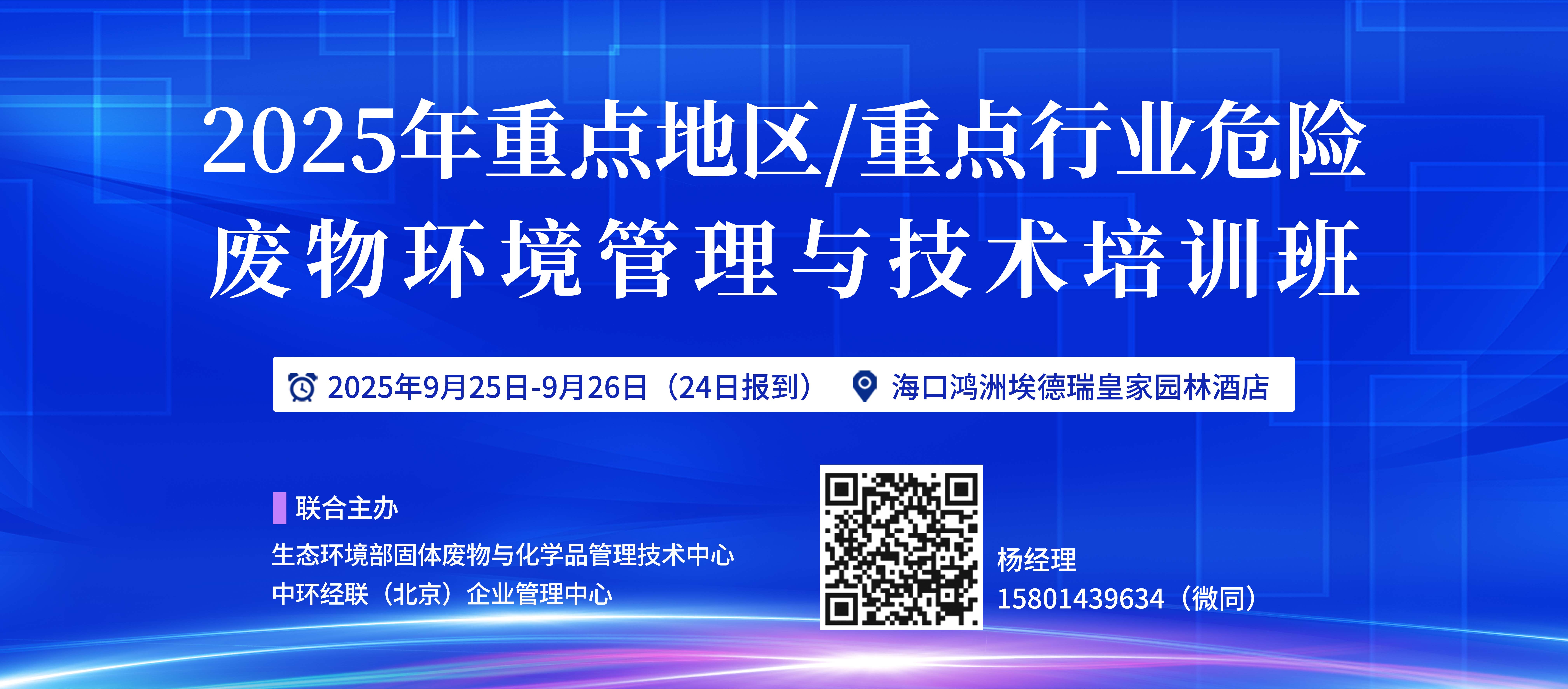 • 【9月·海口】2025年重點地區(qū)/重點行業(yè)危險廢物環(huán)境管理與技術培訓班 重磅來襲!